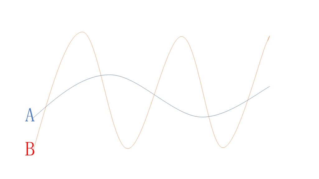 AとBが人の場合、波の長さ・高さも違うので考え方や意識の方向が違っているから気が合わない場面も多いのですが、見方を変えると…