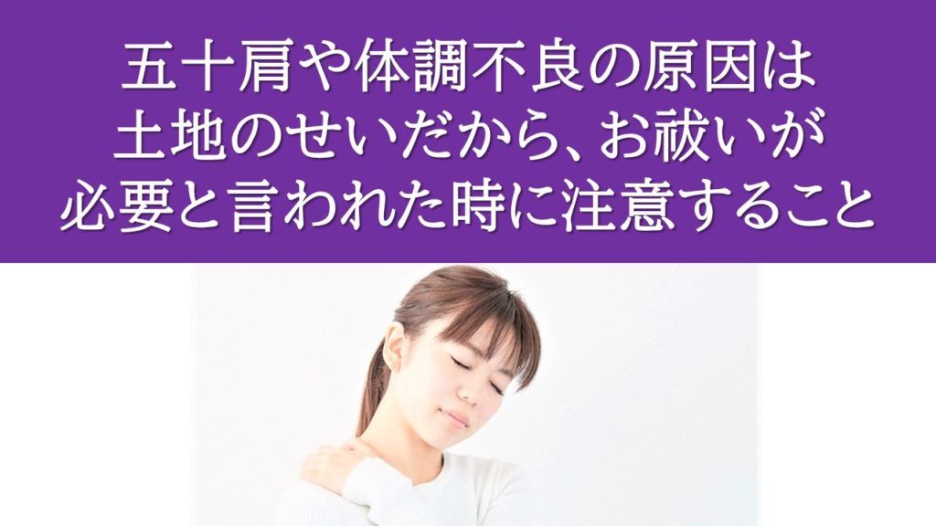 五十肩や体調不良の原因は土地のせいだから、お祓いが必要と言われた時に注意すること